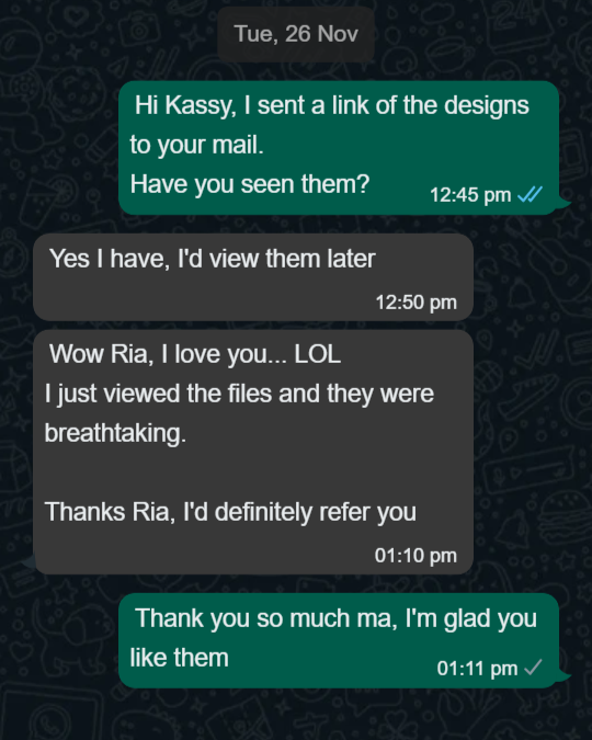 She’s the best at her craft. Working with her was one of the easiest and sweetest experience I have had with a freelancer